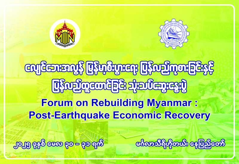ငလျင်ဘေးအလွန် မြန်မာ့စီးပွားရေး ပြန်လည်ကုစားခြင်းနှင့် ပြန်လည်ထူထောင်ခြင်း သုံးသပ်ဆွေးနွေးပွဲ