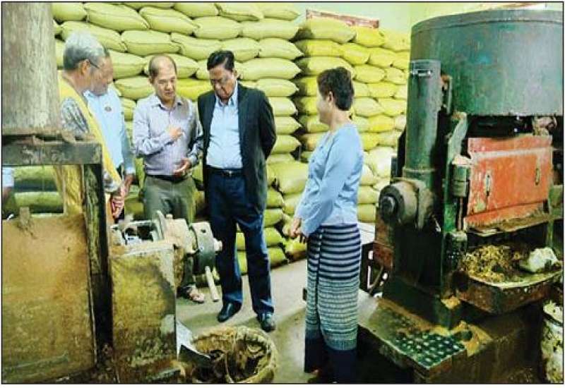 သမဝါယမနှင့်ကျေးလက်ဖွံ့ဖြိုးရေးဝန်ကြီးဌာန ဒုတိယဝန်ကြီး ဦးမြင့်စိုးသည် ယမန်နေ့ ညနေပိုင်းက ရှမ်းပြည်နယ် (တောင်ပိုင်း) တောင်ကြီးမြို့ အသေးစားစက်မှုလက်မှုလုပ်ငန်းဦးစီးဌာန၊ ရက်ကန်းနှင့် အသက်မွေးပညာသင်တန်းကျောင်းသို့ သွားရောက်၍ သင်တန်းကျောင်းအုပ်၊ ဆရာ ဆရာမများ၊ လက်ရက်ကန်းခြောက်လသင်တန်းတက်ရောက်နေသော သင်တန်းသူ သင်တန်းသားများနှင့် တွေ့ဆုံကာ လိုအပ်သည်များ မှာကြားပြီး သင်တန်းသူများ လက်တွေ့ဆောင်ရွက်နေသည့် လက်ရက်ကန်းဖြင့် ပအိုဝ်းခေါင်းပေါင်း၊ ဓနုလုံချည်နှင့် ဒေသခံတိုင်းရင်းသားဝတ်စုံများ ရက်လုပ်နေမှုကိုလည်းကောင်း၊ စက်ရက်ကန်းရက်လုပ်ခြင်း၊ ချားပုတ်ခြင်း၊ ချည်ချခြင်းနှင့် ဂျပ်ခုတ်လုပ်ငန်းလက်တွေ့သင်ယူနေမှုများကိုလည်းကောင်း လိုက်လံကြည့်ရှုအားပေးသည်။