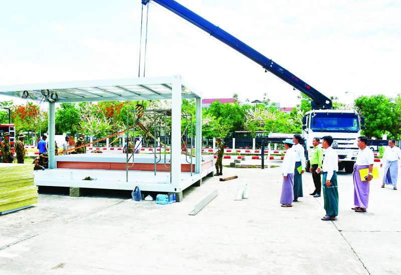 စက်မှုဝန်ကြီးဌာန ပြည်ထောင်စုဝန်ကြီး ဒေါက်တာချာလီသန်းသည် ယနေ့နံနက်ပိုင်းတွင် ပြည်ထောင်စုနယ်မြေ နေပြည်တော်တပေါင်းကွင်း၌ သံ၊ သံမဏိ၊ ဘိလပ်မြေနှင့် ဆောက်လုပ်ရေးလုပ်ငန်းသုံးပစ္စည်းများ ခင်းကျင်းပြသရောင်းချနေမှုအခြေအနေတို့ကို လှည့်လည်အားပေးကြည့်ရှုစစ်ဆေးသည်။