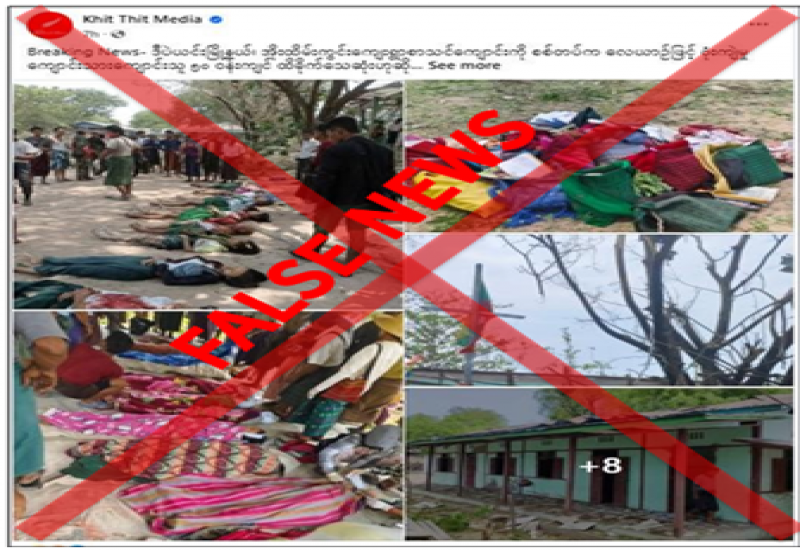 စစ်ကိုင်းတိုင်းဒေသကြီး၊ ဒီပဲယင်းမြို့နယ်၊ အိုးထိမ်းကွင်းကျေးရွာ စာသင်ကျောင်းကို လုံခြုံရေးတပ်ဖွဲ့ဝင်များက လေကြောင်းဖြင့် ဗုံးကြဲတိုက်ခိုက်မှုကြောင့် ဆရာ၊ ဆရာမ ၂ ဦး အပါအဝင် ကျောင်းသား၊ ကျောင်းသူ ၅၀ ဦး ဝန်းကျင်ခန့် ထိခိုက်သေဆုံးခဲ့ကြောင်း တရားမဝင်ပြည်ဖျက်မီဒီယာများက မဟုတ်မမှန်လုပ်ကြံရေးသားဖြန့်ဝေလျက်ရှိကြောင်း သိရှိရသည်။