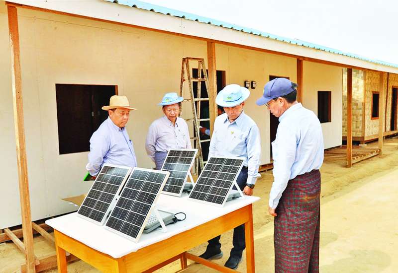 စိုက်ပျိုးရေး၊ မွေးမြူရေးနှင့်ဆည်မြောင်းဝန်ကြီးဌာန ပြည်ထောင်စုဝန်ကြီး ဦးမင်းနောင်သည် ယနေ့မွန်းလွဲပိုင်းတွင် ဇမ္ဗူသီရိမြို့နယ်ရှိ ဆည်မြောင်းနှင့်ရေအသုံးချမှု စီမံခန့်ခွဲရေးဦးစီးဌာနပိုင် မြေနေရာ၌ ငလျင်ဒဏ်သင့်ဝန်ထမ်းများအတွက် ယာယီအဆောက်အအုံ တည်ဆောက်နေမှုကို ကြည့်ရှုစစ်ဆေးသည်။