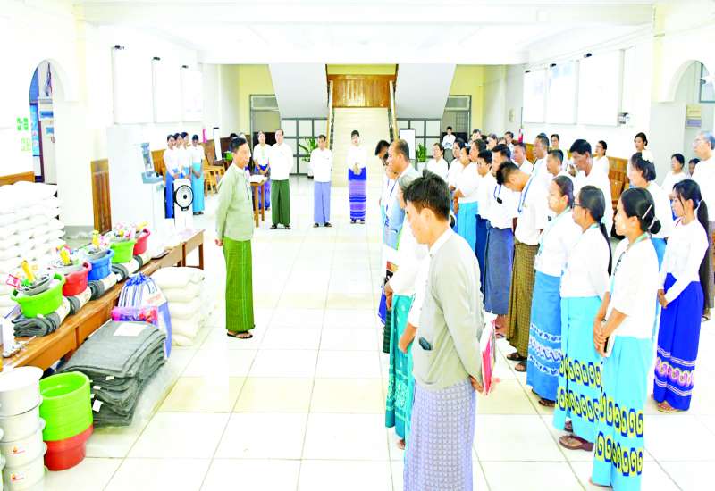 မန္တလေးငလျင်ကြီးကြောင့် သေဆုံး၊ ဒဏ်ရာရ ဝန်ထမ်းများနှင့်မိသားစုဝင်များ ထောက်ပံ့ငွေပေးအပ်ပွဲအခမ်းအနားကို ယနေ့တွင် ရုံးအမှတ် (၂၃) လူမှုဝန်ထမ်း၊ ကယ်ဆယ်ရေးနှင့် ပြန်လည်နေရာချထားရေးဝန်ကြီးဌာန ဧည့်ခန်းဆောင်၌ ကျင်းပသည်။