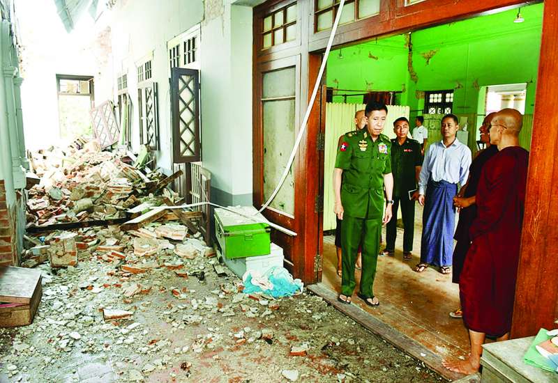 မြန်မာနိုင်ငံတွင် လှုပ်ခတ်ခဲ့သော မန္တလေးငလျင်ကြီးကြောင့် လမ်းတံတား၊ အဆောက်အအုံများ ထိခိုက်ပျက်စီးခဲ့ရသည့် နေရာများ၌ ကူညီကယ်ဆယ်ရေးနှင့် ပြန်လည်ထူထောင်ရေးလုပ်ငန်းများကို တိုင်းစစ်ဌာနချုပ်အသီးသီးမှ တပ်မတော်သားများ၊ မြန်မာနိုင်ငံရဲတပ်ဖွဲ့ဝင်များ၊ မီးသတ်တပ်ဖွဲ့ဝင်များ၊ ပြည်ပနိုင်ငံများမှ ကူညီကယ်ဆယ်ရေးအဖွဲ့များ၊ ဌာနဆိုင်ရာဝန်ထမ်းများ၊ လူမှုကူညီရေးအသင်း/အဖွဲ့များနှင့် ဒေသခံပြည်သူများပူးပေါင်း၍ အချိန်နှင့်တစ်ပြေးညီ ကူညီဆောင်ရွက်ပေးလျက်ရှိသည်။