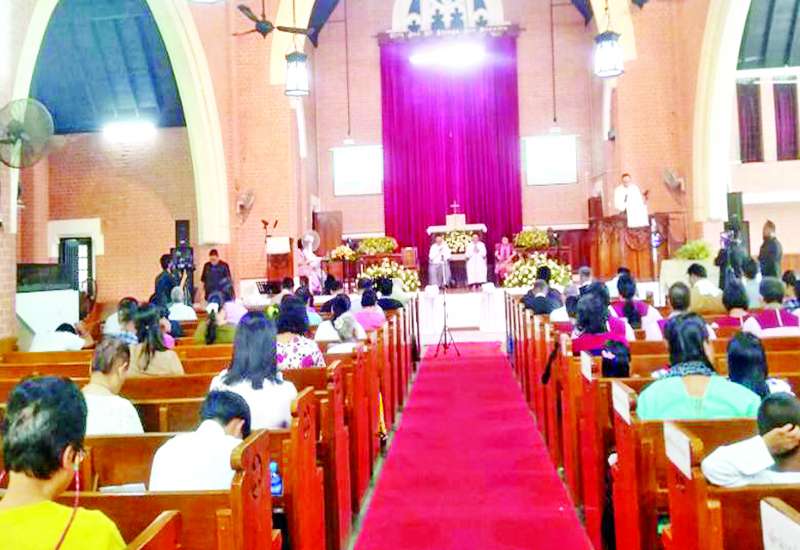 မြန်မာနိုင်ငံခရစ်ယာန်ဂိုဏ်းပေါင်းစုံ ငြိမ်းချမ်းရေးအထောက်အကူပြု ဗဟိုကော်မတီကကြီးမှူး ကျင်းပသည့် ငလျင်ဒဏ်နှင့် သဘာဝဘေးအန္တရာယ် သင့်ပြည်သူများနှင့် ငြိမ်းချမ်းရေးအတွက် ဆုတောင်းခြင်းအစီအစဉ်ကို ယနေ့မွန်းလွဲပိုင်းက ရန်ကုန်မြို့ ဒဂုံမြို့နယ် အလံပြဘုရားလမ်းရှိ မက်သဒစ်အင်္ဂလိပ်အသင်းတော် ဘုရားရှိခိုးကျောင်း၌ ကျင်းပသည်။