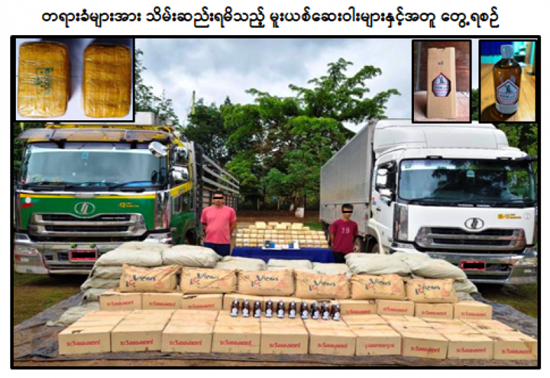 ဝေါမြို့နယ်နှင့် တပ်ကုန်းမြို့တို့၌ ငွေကျပ် ၁ ဒသမ ၅ ဘီလီယံ ကျော်တန်ဖိုးရှိ စိတ်ကြွရူးသွပ်ဆေးပြား ၁၀ သိန်းနှင့် ဆေးခြောက် ၂ ဒသမ ၃ ကီလို ဖမ်းဆီးရမိခဲ့ကြောင်း မြန်မာနိုင်ငံရဲတပ်ဖွဲ့မှ သိရသည်။