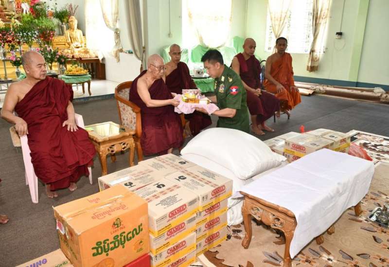 ရှမ်းပြည်နယ်(တောင်ပိုင်း)၊ တောင်ကြီးမြို့နယ်၊ အေးသာယာမြို့၊ ရပ်ကွက်(၁၁)ရှိ စစ်မှုထမ်းဟောင်းအိမ်ရာ၌ နေထိုင်လျက်ရှိသော စစ်မှုထမ်းဟောင်းအဖွဲ့ဝင်များနှင့် မိသားစုဝင်များအား ဆန်၊ ဆီ၊ ကြက်ဥနှင့် စားသောက်ဖွယ်ရာများ ပေးအပ်ခြင်းကို ယနေ့နံနက်ပိုင်းတွင် အဆိုပါရပ်ကွက်ရှိ ဓမ္မာရုံ၌ပြုလုပ်ရာ အရှေ့ပိုင်းတိုင်းစစ်ဌာနချုပ် တိုင်းမှူး ဗိုလ်ချုပ် ဇော်မင်းလတ်နှင့်တာဝန်ရှိသူများ၊ စစ်မှုထမ်းဟောင်းအဖွဲ့ဝင်များနှင့် မိသားစုဝင်များတက်ရောက်ကြသည်။
