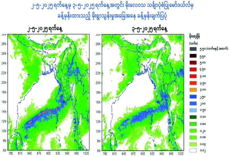 ယနေ့ညနေ ၅ နာရီခွဲအချိန် တိုင်းထွာချက်များအရ အနောက်ဘက်မှ ရွေ့လျားလာသော လေပွေလှိုင်းများ၏ အရှိန်ကြောင့်လည်းကောင်း၊ အရှေ့ဘက်မှ ရွေ့လျားလာသော လေပွေလှိုင်းများ၏ အရှိန်ကြောင့်လည်းကောင်း၊ ကပ္ပလီပင်လယ်ပြင်နှင့်ဘင်္ဂလားပင်လယ်အော်တို့မှ လေနွေးများနှင့် တရုတ်ပြည်မကြီးပေါ်ရှိ လေဖိအားကြီးရပ်ဝန်းဒေသမှ ရွေ့လျားလာသော လေအေးများတွေ့ဆုံမှုကြောင့် လည်းကောင်း ဧပြီ ၂၈ ရက်မှ မေ ၃ ရက်အတွင်း နေပြည်တော်၊ ရန်ကုန်တိုင်းဒေသကြီး၊