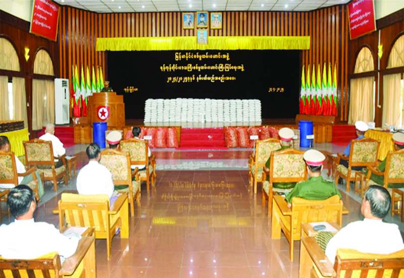 ရှမ်းပြည်နယ် (အရှေ့ပိုင်း) စစ်မှုထမ်းဟောင်းကြီးကြပ်ရေးအဖွဲ့ နှစ်ပတ်လည်အစည်းအဝေးကို ယနေ့နံနက်ပိုင်းတွင် ကျိုင်းတုံမြို့ အမှတ်(၄) ရပ်ကွက်ရှိ စစ်မှုထမ်းဟောင်းကြီးကြပ်ရေးရုံးခန်းမ၌ ပြုလုပ်ရာ တြိဂံဒေသတိုင်းစစ်ဌာနချုပ် တိုင်းမှူး ဗိုလ်မှူးချုပ် စိုးလှိုင်နှင့် တာဝန်ရှိသူများ၊ မြို့နယ်များမှ စစ်မှုထမ်းဟောင်းအဖွဲ့ဝင်များ တက်ရောက်ကြသည်။