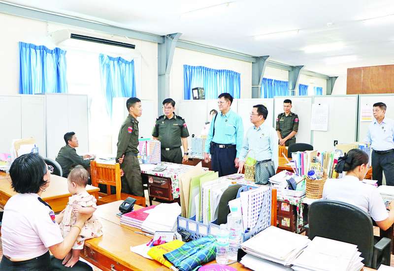 ဒုတိယဝန်ကြီးချုပ်နှင့် ပို့ဆောင်ရေးနှင့်ဆက်သွယ်ရေးဝန်ကြီးဌာန ပြည်ထောင်စုဝန်ကြီး ဗိုလ်ချုပ်ကြီး မြထွန်းဦးသည် ဒုတိယဝန်ကြီးများ၊ အမြဲတမ်းအတွင်းဝန်တို့နှင့်အတူ ယမန်နေ့ မွန်းလွဲပိုင်းက နေပြည်တော်ကောင်စီနယ်မြေအတွင်းရှိ ပျဉ်းမနား ဘူတာယာဒ်ဝင်းနှင့် သတင်းအချက်အလက်နည်းပညာနှင့် ဆိုက်ဘာလုံခြုံရေးဦးစီးဌာနနေရာများ၌ ငလျင်ဒဏ်ကြောင့် ထိခိုက်ပျက်စီးမှုများအား ပြန်လည်ပြင်ဆင်မွမ်းမံနေသည့် လုပ်ငန်းခွင်နေရာများကို ကြည့်ရှုစစ်ဆေးသည်။