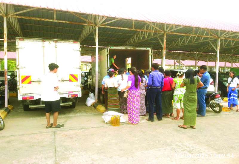 စီးပွားရေးနှင့်ကူးသန်းရောင်းဝယ်ရေးဝန်ကြီးဌာနနှင့် မြန်မာနိုင်ငံကုန်သည်များနှင့် စက်မှုလက်မှုလုပ်ငန်းရှင်များအသင်းချုပ် (UMFCCI) တို့၏ စီစဉ်မှုဖြင့် ဆန်၊ ဆီ၊ ပဲ၊ ဆား၊ ငါးပိနှင့်ကုန်မျိုးစုံဈေးကားများသည် ပြည်ထောင်စုနယ်မြေ နေပြည်တော်အတွင်း ငလျင်ဒဏ်သင့်ဝန်ထမ်းအိမ်ရာများသို့ မတ် ၃၀ ရက်မှစ၍ အိမ်တိုင်ရာရောက် သွားရောက်ကာ သက်သာသောဈေးနှုန်းများဖြင့် ရောင်းချပေးလျက်ရှိပြီး ယနေ့တွင် ၁၂ ရက်မြောက်နေ့အဖြစ် ဈေးကားခုနစ်စီးဖြင့် လှည့်လည်ရောင်းချပေးကြောင်း သိရသည်။
