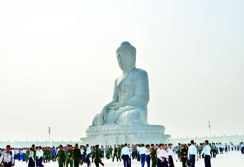နှစ်(၈၀)ပြည့်တပ်မတော်နေ့ စစ်ရေးပြအခမ်းအနားတွင် ပါဝင်သည့် စစ်ရေးပြစစ်ကြောင်းများမှ တပ်မတော် (ကြည်း၊ ရေ၊ လေ)အရာရှိ၊ စစ်သည်များ၊ တပ်မတော်(ကြည်း) အမျိုးသမီးစစ်ရေးပြ တပ်ခွဲ၊ မြန်မာနိုင်ငံရဲတပ်ဖွဲ့ဝင်များနှင့် မြန်မာနိုင်ငံရဲတပ်ဖွဲ့အမျိုးသမီး စစ်ရေးပြတပ်ခွဲတို့သည် ယနေ့နံနက်ပိုင်းတွင် ပြည်ထောင်စုနယ်မြေ နေပြည်တော်ဒက္ခိဏသီရိမြို့နယ်ရှိ ဗုဒ္ဓဥယျာဉ်ဝတ္ထုကံတော်တွင် တည်ထားပူဇော်သည့် ကမ္ဘာပေါ်ရှိ ထိုင်တော်မူကျောက်ဆစ်ဗုဒ္ဓရုပ်ပွားတော်များအနက် ဉာဏ်တော်အမြင့်ဆုံးဖြစ်သည့် မာရဝိဇယဗုဒ္ဓရုပ်ပွားတော် မြတ်ကြီးအားသွားရောက်ဖူးမြော် ကြည်ညိုကြသည်။