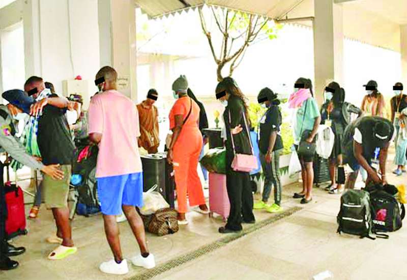 ထိုင်းနိုင်ငံအပါအဝင် အိမ်နီးချင်းနိုင်ငံအချို့ကို တစ်ဆင့်ခံဖြတ်သန်း၍ မြန်မာနိုင်ငံအတွင်းသို့ နယ်စပ်လမ်းကြောင်းများမှ တရားမဝင် ဝင်ရောက်လာပြီး ကရင်ပြည်နယ်၊ မြဝတီမြို့-မယ်ထော်သလေးနယ်မြေမှ အွန်လိုင်းလောင်းကစားမှုများ၊ အွန်လိုင်းလိမ်လည်မှုများအပါအဝင် ဒုစရိုက်မှုများကျူးလွန်ခဲ့ကြသည့် ပြည်ပနိုင်ငံသားများကို စစ်ဆေးဖော်ထုတ် ထိန်းသိမ်းလျက်ရှိရာ ယနေ့တွင် တရုတ်နိုင်ငံသား ၅၀ ဦး၊ အီသီယိုးပီးယားနိုင်ငံသား ၁၀၀ ဦးနှင့် ကင်ညာနိုင်ငံသား ၂၂ ဦးတို့ကို ထပ်မံထိန်းသိမ်းနိုင်ခဲ့သည်။