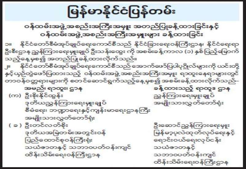 ဝန်ထမ်းအဖွဲ့အစည်းအကြီးအမှူး အတည်ပြုခန့်ထားခြင်းနှင့် ဝန်ထမ်းအဖွဲ့အစည်းအကြီးအမှူးများ ခန့်ထားခြင်း
