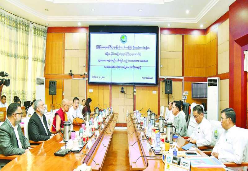 ပြန်ကြားရေးဝန်ကြီးဌာန ပြည်ထောင်စုဝန်ကြီး ဦးမောင်မောင်အုန်းအား အိန္ဒိယနိုင်ငံ ယဉ်ကျေးမှုဝန်ကြီးဌာနအောက်ရှိ ဗုဒ္ဓဘာသာအဖွဲ့အစည်းတစ်ခုဖြစ်သည့် International Buddhist Confederation (IBC) အထွေထွေအတွင်းရေးမှူး Ven.Shartse Khensur Rinpoche Jangchup Choeden နှင့်အဖွဲ့သည် ယနေ့နံနက် ၁၀ နာရီတွင် နေပြည်တော်ရှိ ပြန်ကြားရေးဝန်ကြီးဌာန အစည်းအဝေးခန်းမ၌ လာရောက်တွေ့ဆုံသည်။