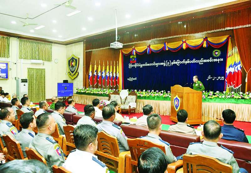 မြန်မာနိုင်ငံ ရဲမှုထမ်းဟောင်းများအဖွဲ့ (၃) နှစ်မြောက် နှစ်ပတ်လည်အခမ်းအနားကို ယနေ့မွန်းလွဲပိုင်းတွင် နေပြည်တော် မြန်မာနိုင်ငံရဲတပ်ဖွဲ့ဌာနချုပ် အရိန္ဒမာခန်းမ၌ ကျင်းပပြုလုပ်ရာ ပြည်ထဲရေးဝန်ကြီးဌာန ပြည်ထောင်စုဝန်ကြီး ဒုတိယဗိုလ်ချုပ်ကြီး ထွန်းထွန်းနောင် တက်ရောက်အမှာစကား ပြောကြားသည်။