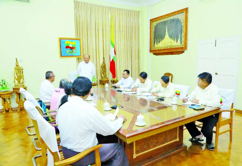 အားကစားနှင့် လူငယ်ရေးရာဝန်ကြီးဌာန ပြည်ထောင်စုဝန်ကြီး Jeng Phang နော်တောင်၊ ဒုတိယဝန်ကြီး ဦးထိန်လင်းနှင့် တာဝန်ရှိသူများသည် ယနေ့မွန်းလွဲပိုင်းတွင် မြန်မာနိုင်ငံ သိုင်းအားကစားအဖွဲ့ချုပ်ဥက္ကဋ္ဌ ဦးရဲမြင့်နှင့်အဖွဲ့အား နေပြည်တော်ရုံးအမှတ် (၃၁) ရှိ အားကစားနှင့် လူငယ်ရေးရာဝန်ကြီးဌာနဧည့်ခန်းမ၌ လက်ခံတွေ့ဆုံသည်။