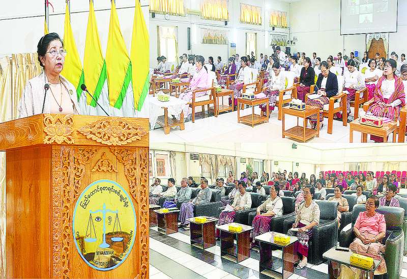 မြန်မာနိုင်ငံစာရင်းကောင်စီက ကြီးမှူးကျင်းပသည့် လက်မှတ်ရပြည်သူ့စာရင်းကိုင် (Certified Public Accountant – CPA) (ပထမပိုင်း) သင်တန်းအမှတ်စဉ် (၄၈) သင်တန်းဆင်းပွဲအခမ်းအနားကို ယနေ့နံနက်ပိုင်းတွင် နေပြည်တော်ရှိ ပြည်ထောင်စုစာရင်းစစ်ချုပ်ရုံး၊ နဝရတ်ခန်းမ၌ Hybrid System ဖြင့်ကျင်းပရာ ပြည်ထောင်စုစာရင်းစစ်ချုပ် မြန်မာနိုင်ငံစာရင်းကောင်စီဥက္ကဋ္ဌ ဒေါက်တာခင်နိုင်ဦး တက်ရောက်၍ သင်တန်းဆင်းအမှာစကားပြောကြားသည်။