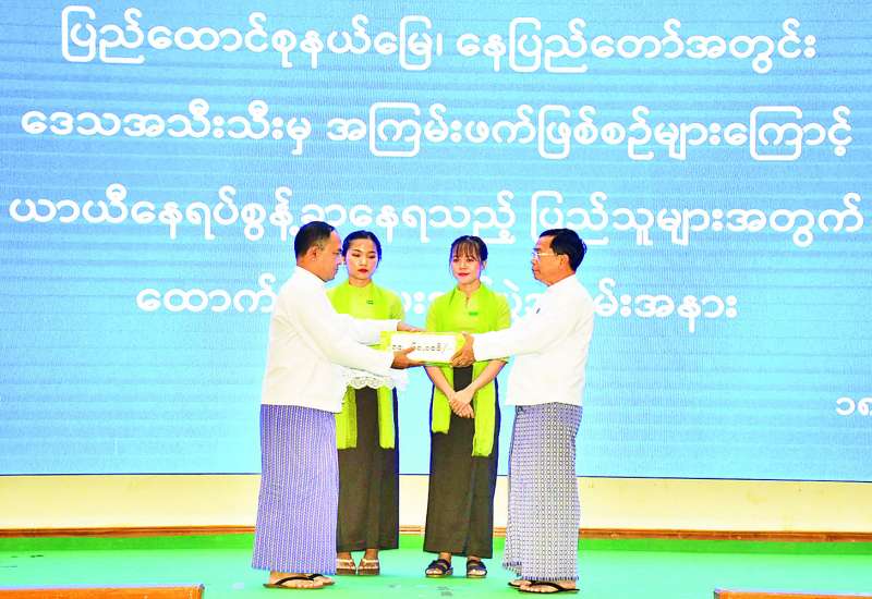 အကြမ်းဖက်ဖြစ်စဉ်များကြောင့် ပြည်ထောင်စုနယ်မြေ နေပြည်တော်အတွင်း ရောက်ရှိနေသော ယာယီနေရပ်စွန့်ခွာပြည်သူများအတွက် ထောက်ပံ့ငွေပေးအပ်ပွဲကို ယနေ့မွန်းလွဲပိုင်းတွင် နေပြည်တော်ကောင်စီရုံး ဇမ္ဗူသီရိခန်းမ၌ကျင်းပရာ နေပြည်တော်ကောင်စီဥက္ကဋ္ဌ ဦးသန်းထွန်းဦး၊ နေပြည်တော်ကောင်စီဝင်များ၊ နေပြည်တော်စည်ပင်သာယာရေးကော်မတီ ကော်မတီဝင်များ၊ တာဝန်ရှိသူများနှင့် ယာယီနေရပ်စွန့်ခွာနေရသည့် ပြည်သူများတက်ရောက်ကြသည်။