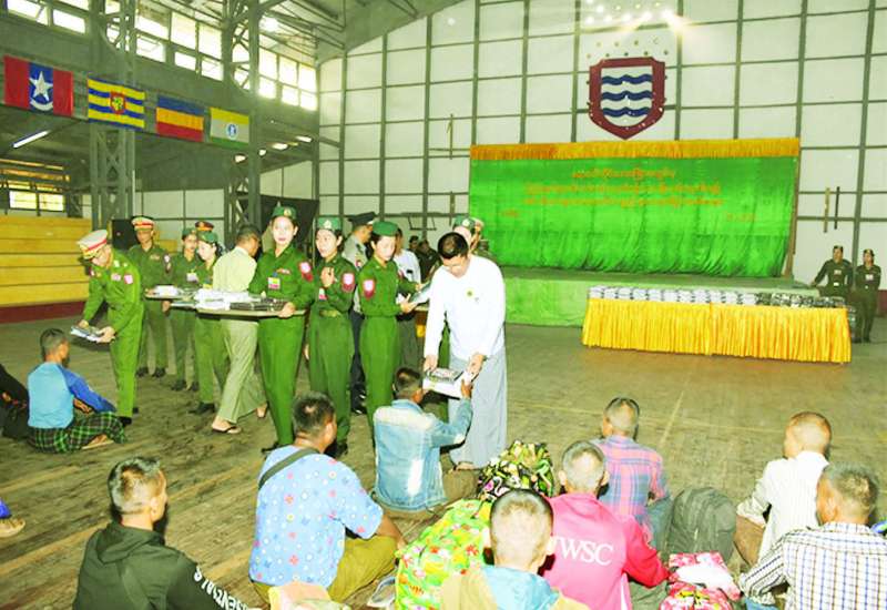 ပြည်သူ့စစ်မှုထမ်း သင်တန်းအမှတ်စဉ် (၁၀) သို့ တက်ရောက်မည့် ဧရာဝတီတိုင်းဒေသကြီးအတွင်းမှ နိုင်ငံ့သားကောင်းရတနာများအား ယနေ့နံနက်ပိုင်းတွင် ဧရာဝတီတိုင်းဒေသကြီး ဝန်ကြီးချုပ်ဦးတင်မောင်ဝင်း၊ အနောက်တောင်တိုင်းစစ်ဌာနချုပ် တိုင်းမှူးဗိုလ်မှူးချုပ် စိုးကျော်ထက်နှင့် တာဝန်ရှိသူများက တိုင်းစစ်ဌာနချုပ် အားကစားခန်းမ၌ သွားရောက်တွေ့ဆုံသည်။