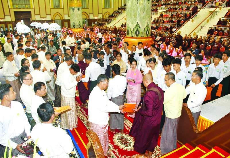 သာသနာရေးနှင့် ယဉ်ကျေးမှုဝန်ကြီးဌာန သာသနာရေးဦးစီးဌာနကကြီးမှူး၍ ရန်ကုန်တိုင်း ဒေသကြီးအစိုးရအဖွဲ့၏ ဦးဆောင်မှုဖြင့် လှူဒါန်းပူဇော်သည့် (၆၂) ကြိမ်မြာက် မဟာဘွဲ့နှင်းသဘင်အခမ်းအနားကို ယနေ့မွန်းလွဲပိုင်းတွင် ရန်ကုန်မြို့ သီရိမင်္ဂလာကမ္ဘာအေးကုန်းမြေ ဆဋ္ဌသံဂါယနာ မဟာပါသာဏလိုဏ်ဂူသိမ်တော်ကြီး၌ ကျင်းပသည်။