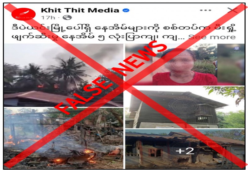စစ်ကိုင်းတိုင်းဒေသကြီး၊ ဒီပဲယင်းမြို့ပေါ်ရပ်ကွက်များရှိ နေအိမ်များကို လုံခြုံရေးတပ်ဖွဲ့ဝင်များက ဖေဖော်ဝါရီလ ၁၂ ရက် နံနက်ပိုင်းတွင် မီးရှို့ဖျက်ဆီးပြီး လက်နက်ကြီးများဖြင့် ပစ်ခတ်တိုက်ခိုက်ခဲ့သည်ဟု တရားမဝင်ပြည်ဖျက်မီဒီယာများက Online သတင်းစာမျက်နှာများတွင် မဟုတ်မမှန် ရေးသားဖြန့်ဝေနေသည်ကို တွေ့ရှိရသည်။