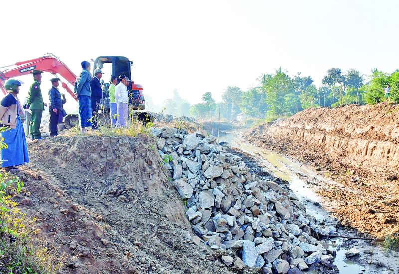 နေပြည်တော်ကောင်စီဥက္ကဋ္ဌ ဦးသန်းထွန်းဦးသည် နေပြည်တော်ကောင်စီဝင်များဖြစ်ကြသည့် ဗိုလ်မှူးကြီးရဲမိုး၊ ဦးဟန်သူ၊ ဌာနဆိုင်ရာတာဝန်ရှိသူများနှင့်အတူ ယနေ့နံနက်ပိုင်းတွင် ၂၀၂၄-၂၀၂၅ ဘဏ္ဍာနှစ် နေပြည်တော်ကောင်စီ၏ ငွေလုံးငွေရင်းခွင့်ပြုရန်ပုံငွေဖြင့် နေပြည်တော်ရေအရင်းအမြစ်နှင့် မြစ်ချောင်းများ ဖွံ့ဖြိုးတိုးတက်ရေးဦးစီးဌာနမှ ဆောင်ရွက်နေသည့် ဒက္ခိဏသီရိမြို့နယ် ရွှေခဲအင်းကျေးရွာအတွင်းရှိ ရအောင်းချောင်း ကမ်းပြိုကာကွယ်ရေးလုပ်ငန်းဆောင်ရွက်နေမှုကို ကြည့်ရှုစစ်ဆေးပြီး လုပ်ငန်းပိုင်းဆိုင်ရာ လိုအပ်ချက်များကို မှာကြားသည်။