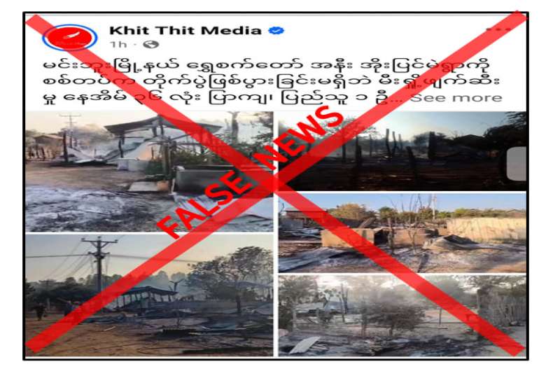 မကွေးတိုင်းဒေသကြီး၊ မင်းဘူးမြို့နယ် ရွှေစက်တော်အနီးရှိ အိုးပြင်မဲရွာကို ဇန်နဝါရီလ ၁၁ ရက်တွင် လုံခြုံရေးတပ်ဖွဲ့ဝင်များက တိုက်ပွဲဖြစ်ပွားခြင်းမရှိဘဲ မီးရှို့ဖျက်ဆီးခြင်းကြောင့် နေအိမ် ၃၆ လုံး ပျက်စီးခဲ့ကြောင်း ပြည်ဖျက်မီဒီယာများက သတင်းအမှားများ မဟုတ်မမှန် ရေးသားဖြန့်ဝေလျက်ရှိကြောင်း တွေ့ရှိရသည်။