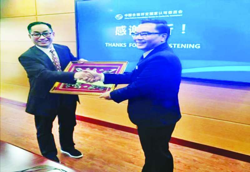 သိပ္ပံနှင့်နည်းပညာဝန်ကြီးဌာန ဒုတိယဝန်ကြီး ဒေါက်တာ အောင်ဇေယျ ဦးဆောင်သော မြန်မာကိုယ်စားလှယ်အဖွဲ့သည် ဇန်နဝါရီ ၇ ရက် မွန်းလွဲပိုင်းက တရုတ်ပြည်သူ့သမ္မတနိုင်ငံ ပေကျင်းမြို့ရှိ China National Accreditation Service for Conformity Assessment (CNAS) ရုံးချုပ်သို့ ရောက်ရှိရာ အမှုဆောင်အရာရှိချုပ်နှင့် တာဝန်ရှိသူများက ဂုဏ်ပြုနေ့လယ်စာဖြင့် တည်ခင်းဧည့်ခံကြသည်။