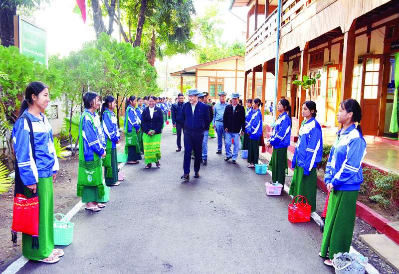 နယ်စပ်ရေးရာဝန်ကြီးဌာန ပြည်ထောင်စုဝန်ကြီး ဒုတိယဗိုလ်ချုပ်ကြီး ထွန်းထွန်းနောင်သည် တာဝန်ရှိသူများနှင့်အတူ ယနေ့မွန်းလွဲပိုင်းတွင် မြစ်ကြီးနားမြို့ရှိ အမှတ် (၁) နယ်စပ်ဒေသ တိုင်းရင်းသားလူငယ်များ ဖွံ့ဖြိုးရေးသင်တန်းကျောင်းသို့ရောက်ရှိပြီး ကျောင်းအတွင်း လှည့်လည်ကြည့်ရှုစစ်ဆေးကာ လိုအပ်သည်များဖြည့်ဆည်းဆောင်ရွက်ပေးသည်။