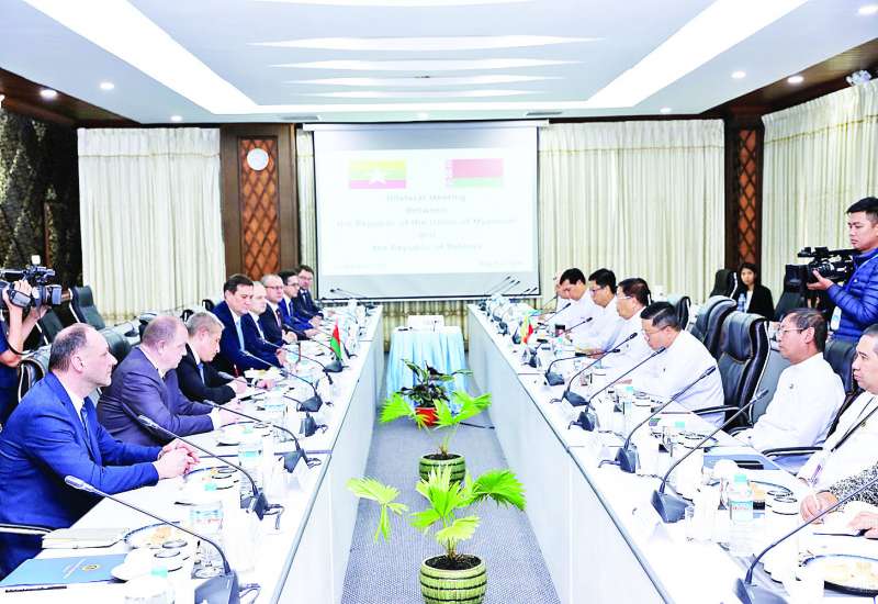 ဒုတိယဝန်ကြီးချုပ်နှင့် နိုင်ငံခြားရေးဝန်ကြီးဌာန ပြည်ထောင်စုဝန်ကြီး ဦးသန်းဆွေနှင့် ဘယ်လာရုစ်သမ္မတနိုင်ငံ နိုင်ငံခြားရေးဝန်ကြီးဌာန ဝန်ကြီး H.E. Mr. Maxim RYZHENKOV တို့ တွေ့ဆုံဆွေးနွေးပွဲကို ယနေ့နံနက် ၉ နာရီတွင် နေပြည်တော်ရှိ နိုင်ငံခြားရေးဝန်ကြီးဌာန၌ ကျင်းပပြုလုပ်သည်။