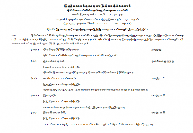 လျှပ်စစ်နှင့် စွမ်းအင်ဖွံ့ဖြိုးရေးကော်မရှင်ဖွဲ့စည်းခြင်း