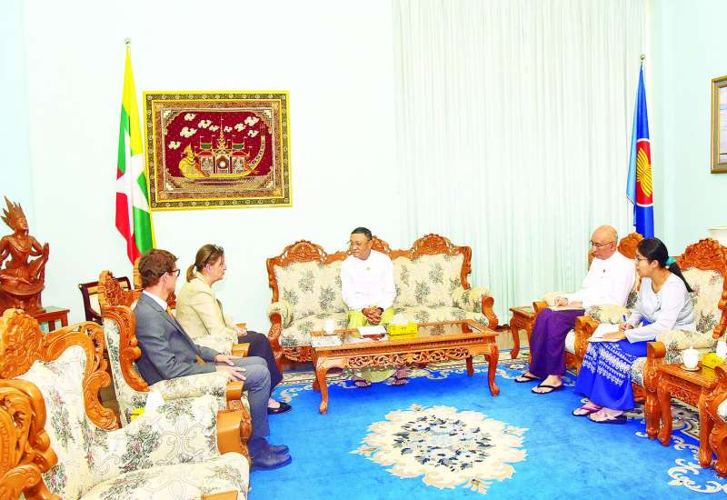 နိုင်ငံခြားရေးဝန်ကြီးဌာန ဒုတိယဝန်ကြီး ဦးကိုကိုကျော်သည် တာဝန်ပြီးဆုံး၍ မြန်မာနိုင်ငံမှ ပြန်လည်ထွက်ခွာတော့မည့် အပြည်ပြည်ဆိုင်ရာ ကြက်ခြေနီကော်မတီ (ICRC) ၏ မြန်မာနိုင်ငံဆိုင်ရာ ဌာနေကိုယ်စားလှယ် Ms. Elena Ajmone Sessera နှင့် မြန်မာနိုင်ငံဆိုင်ရာ ဌာနေကိုယ်စားလှယ်အသစ် Mr. Arnaud de Baecque တို့ကို ယနေ့ မွန်းလွဲ ၁ နာရီတွင် နေပြည်တော်ရှိ နိုင်ငံခြားရေးဝန်ကြီးဌာန၌ လက်ခံတွေ့ဆုံသည်။