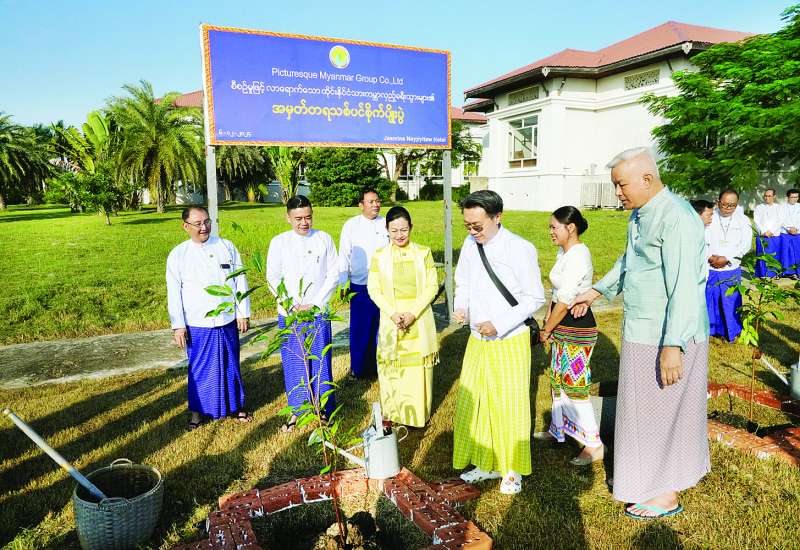 မြန်မာနိုင်ငံသို့ လာရောက်လည်ပတ်ကြသည့် ထိုင်းနိုင်ငံသား ခရီးသွားဧည့်သည်များ အမှတ်တရ သစ်ပင်စိုက်ပျိုးခြင်းအခမ်းအနားကို ယနေ့နံနက်ပိုင်းတွင် နေပြည်တော်ရှိ Jasmine Naypyitaw Hotel ၌ကျင်းပရာ ဟိုတယ်နှင့်ခရီးသွားလာရေးဝန်ကြီးဌာန ပြည်ထောင်စုဝန်ကြီး ဒေါက်တာ သက်သက်ခိုင်၊ ဒုတိယဝန်ကြီး ဦးဖြိုးဇော်စိုး၊ အမြဲတမ်းအတွင်းဝန်နှင့် တာဝန်ရှိသူများက သွားရောက်ကြည့်ရှုအားပေးသည်။