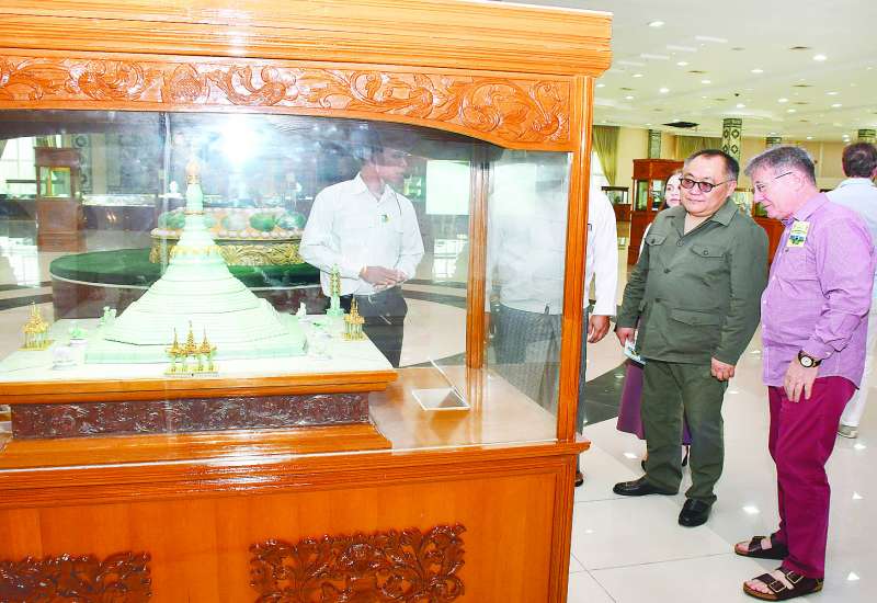 နိုင်ငံတော်စီမံအုပ်ချုပ်ရေးကောင်စီ အတွင်းရေးမှူး ဗိုလ်ချုပ်ကြီး အောင်လင်းဒွေး၏ ဖိတ်ကြားချက်အရ နေပြည်တော်သို့ရောက်ရှိနေသော ရုရှားဖက်ဒရေးရှင်းနိုင်ငံ ဒူးမားလွှတ်တော် ဒုတိယဥက္ကဋ္ဌ H.E. Mr. Sholban Kara - Ool ဦးဆောင်သော ကိုယ်စားလှယ်အဖွဲ့သည် ယနေ့နံနက်ပိုင်းတွင် နေပြည်တော်ရှိအထင်ကရနေရာများသို့ သွားရောက်လေ့လာကြရာ ဦးစွာ နေပြည်တော်အမျိုးသားပြတိုက်သို့ရောက်ရှိပြီး နေပြည်တော်အမျိုးသားပြတိုက် Mini Thratre ၌ တာဝန်ရှိသူများက ပြတိုက်သမိုင်းကြောင်းကို ဗီဒီယိုမှတ်တမ်းဖြင့် ရှင်းလင်းပြသပြီး သမိုင်းမတင်မီ ခေတ်ပြခန်း၊ သမိုင်းတင်ခေတ်ဦးပြခန်း၊ လက်ဆောင်ပစ္စည်းများပြခန်း၊ သီဟာသနပလ္လင်ပြခန်းနှင့် နိုင်ငံတော်သမ္မတများ အသုံးပြုခဲ့သည့် မော်တော်ယာဉ်များပြခန်းတို့ကို လေ့လာကြည့်ရှုကြသည်။