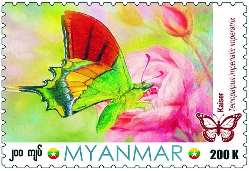 ပို့ဆောင်ရေးနှင့် ဆက်သွယ်ရေးဝန်ကြီးဌာန မြန်မာ့စာတိုက်လုပ်ငန်းမှ သယံဇာတနှင့် သဘာဝ ပတ်ဝန်းကျင်ထိန်းသိမ်းရေးဝန်ကြီးဌာနက မြန်မာနိုင်ငံ၌တွေ့ရှိရသော လိပ်ပြာမျိုးစိတ်အဖြစ် မှတ်တမ်းတင်သဘောထား မှတ်ချက်ပြုထားသည့် “Kaiser” လိပ်ပြာပုံ (၂၀၀ ကျပ်တန်) စာပို့တံဆိပ်ခေါင်းသစ်တစ်မျိုးအား ၂၀၂၄ ခုနှစ်၊ ဒီဇင်ဘာ ၆ ရက်၊ မြန်မာသက္ကရာဇ် ၁၃၈၆ ခုနှစ်၊ နတ်တော်လဆန်း ၆ ရက် (သောကြာနေ့) နံနက် ၉ နာရီခွဲမှစတင်၍ နေပြည်တော် ဗဟိုစာတိုက်ကြီး၊ ရန်ကုန်စာတိုက်ကြီး၊ မန္တလေးစာတိုက်ကြီးတို့နှင့် တိုင်းဒေသကြီး/ပြည်နယ်များရှိ စာတိုက်ကြီးများတွင် တစ်ပြိုင်တည်းရောင်းချပေးသွားမည်ဖြစ်သည်။