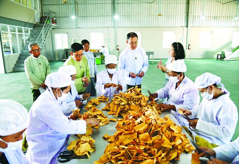 သယံဇာတနှင့် သဘာဝပတ်ဝန်းကျင်ထိန်းသိမ်းရေးဝန်ကြီးဌာန ပြည်ထောင်စုဝန်ကြီး ဦးခင်မောင်ရီသည် ယနေ့မွန်းလွဲပိုင်းတွင် နေပြည်တော် ဒက္ခိဏစက်မှုဇုန်ရှိ နရိန္ဒြာစိုက်ပျိုးရေးထွက်ကုန် တန်ဖိုးမြှင့် ထုတ်လုပ်ရေးလုပ်ငန်း၏ မျှစ်ခြောက်ထုတ်လုပ်တင်ပို့မှုအခြေအနေကို သွားရောက်ကြည့်ရှုစစ်ဆေးရာ လုပ်ငန်းတာဝန်ခံက မျှစ်ခြောက်ထုတ်လုပ်မှုလုပ်ငန်းစဉ်အဆင့်ဆင့်နှင့် ကုန်ကြမ်းရရှိမှုအခြေအနေ၊ မျှစ်ခြောက်ထွက်ကုန်များအား ဂျပန်နိုင်ငံသို့ နှစ်စဉ်တင်ပို့နေမှုအခြေအနေ၊ ဝါးစိုက်ခင်းတည်ထောင်ထားမှုအခြေအနေများနှင့်ပတ်သက်၍ ရှင်းလင်း တင်ပြသည်။