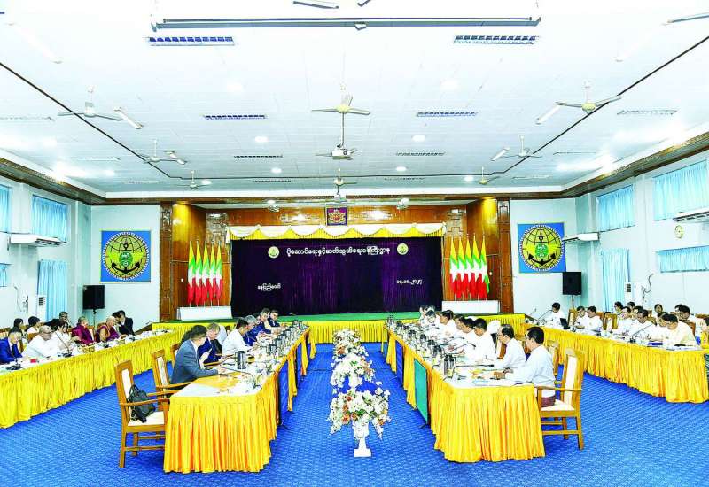 နိုင်ငံတော်စီမံအုပ်ချုပ်ရေးကောင်စီအဖွဲ့ဝင်၊ ဒုတိယဝန်ကြီးချုပ်နှင့် ပို့ဆောင်ရေးနှင့်ဆက်သွယ်ရေးဝန်ကြီးဌာန ပြည်ထောင်စုဝန်ကြီး ဗိုလ်ချုပ်ကြီး မြထွန်းဦး၊ ဒုတိယဝန်ကြီးချုပ်နှင့် စီမံကိန်းနှင့်ဘဏ္ဍာရေးဝန်ကြီးဌာန ပြည်ထောင်စုဝန်ကြီး ဦးဝင်းရှိန်တို့ ဦးဆောင်သော ပြည်ထောင်စုဝန်ကြီးများသည် မြန်မာနိုင်ငံသို့ အလည်အပတ်ရောက်ရှိနေသော ရုရှားဖက်ဒရေးရှင်းနိုင်ငံ၊ ဘူရားတီးရားပြည်နယ်အကြီးအကဲ Mr. Alexey Sambuevich Tsydenov ဦးဆောင်သော ကိုယ်စားလှယ်အဖွဲ့အား ယနေ့နေ့လယ်ပိုင်းက နေပြည်တော်၊ ပို့ဆောင်ရေးနှင့်ဆက်သွယ်ရေးဝန်ကြီးဌာန၊ ရုံးအမှတ် (၅) တွင် လက်ခံလက်တွေ့ဆုံသည်။