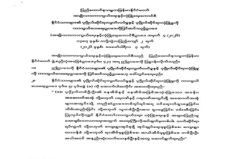 နိုင်ငံသားများ၏ ပုဂ္ဂိုလ်ဆိုင်ရာလွတ်လပ်မှုနှင့် ပုဂ္ဂိုလ်ဆိုင်ရာလုံခြုံမှုကို ကာကွယ်ပေးရေးဥပဒေကို ပြင်ဆင်သည့်ဥပဒေ