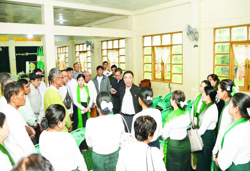 စိုက်ပျိုးရေး၊ မွေးမြူရေးနှင့် ဆည်မြောင်းဝန်ကြီးဌာန ပြည်ထောင်စုဝန်ကြီး ဦးမင်းနောင်သည် ယနေ့နံနက်ပိုင်းတွင် မန္တလေးတိုင်းဒေသကြီး မိတ္ထီလာမြို့နယ် ထမုန်ကန်ကျေးရွာအုပ်စု မိုးစပါး နည်းပညာပေးစံပြစိုက်ကွင်း၌ကျင်းပသည့် ဓာတ်မြေဩဇာကြဲပက်ပွဲသို့ တက်ရောက်လာကြသည့် တောင်သူများနှင့် ရင်းနှီးခင်မင်စွာတွေ့ဆုံ၍ စိုက်ပျိုးထုတ်လုပ်မှု အလားအလာကောင်းသော ဒေသများကို အားပေးထောက်ပံ့ကူညီမှုများ ဆောင်ရွက်ပေးလျက်ရှိပါကြောင်း၊ မျိုးစေ့ထုတ်လုပ်ငန်းရှင်များနှင့် တောင်သူများအကြား မျှတသည့်အကျိုး စီးပွားဖြစ်ထွန်းစေရေး အပြန်အလှန်ပူးပေါင်းဆောင်ရွက်ခြင်းဖြင့် ရေရှည်တည်တံ့သော မျိုးစေ့ထုတ်လုပ်ငန်းများ ဖွံ့ဖြိုးလားစေရေး ကြိုးပမ်းကြစေလိုကြောင်း ဆွေးနွေးပြောကြားပြီး မိုးစပါးခင်းတွင် တောင်သူများ စုပေါင်း၍ ဓာတ်မြေဩဇာကြဲပက်မှုကို ကွင်းဆင်းကြည့်ရှုအားပေးကြသည်။
