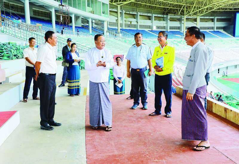 ၂၀၂၄ ခုနှစ် ပဉ္စမအကြိမ် အမျိုးသားအားကစားပွဲတော် အခမ်းအနားပြင်ဆင်ရေး ဆပ်ကော်မတီဥက္ကဋ္ဌ ဆောက်လုပ်ရေးဝန်ကြီးဌာန ဒုတိယဝန်ကြီး ဦးဝင်းဖေနှင့် တာဝန်ရှိသူများသည် ယနေ့မွန်းလွဲပိုင်းတွင် ပဉ္စမအကြိမ် အမျိုးသားအားကစားပွဲတော် ဖွင့်ပွဲ/ပိတ်ပွဲအခမ်းအနား ကျင်းပမည့်နေရာများ ကြိုတင်ပြင်ဆင် ဆောင်ရွက်နေမှုများနှင့် ဒိုင်/ဂျူရီများ တည်းခိုနေထိုင်မည့် အိပ်ဆောင်များ ပြုပြင်မွမ်းမံ ဆောင်ရွက်နေမှုအခြေအနေများကို လိုက်လံကြည့်ရှုစစ်ဆေးသည်။