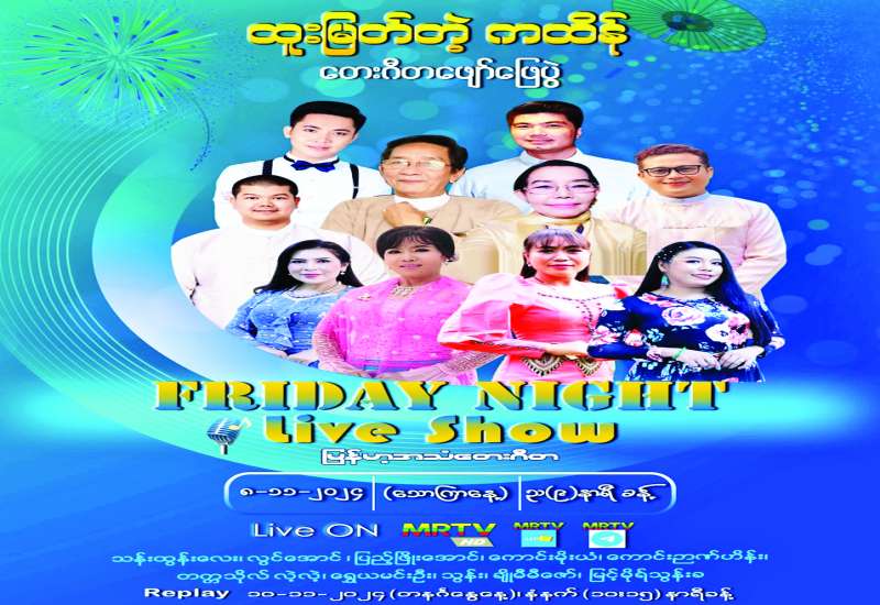 မြန်မာ့အသံနှင့် ရုပ်မြင်သံကြားအနေဖြင့် ပြည်သူများ အပန်းပြေစေရန်နှင့် စိတ်ခွန်အားသစ်များ ရရှိနိုင်ရန်ရည်ရွယ်ပြီး Friday Night Live Show တေးဂီတဖျော်ဖြေပွဲများကို ဆန်းသစ်တင်ဆက်လျက်ရှိရာ ၂၀၂၄ ခုနှစ် နိုဝင်ဘာ ၈ ရက် (သောကြာနေ့) ည ၉ နာရီခန့်တွင် “ထူးမြတ်တဲ့ကထိန်” တေးဂီတဖျော်ဖြေပွဲကို မြန်မာ့အသံနှင့် ရုပ်မြင်သံကြား၏ MRTV-HD Channel မှ တိုက်ရိုက် (Live) ထုတ်လွှင့်ပြသမည်ဖြစ်သည်။