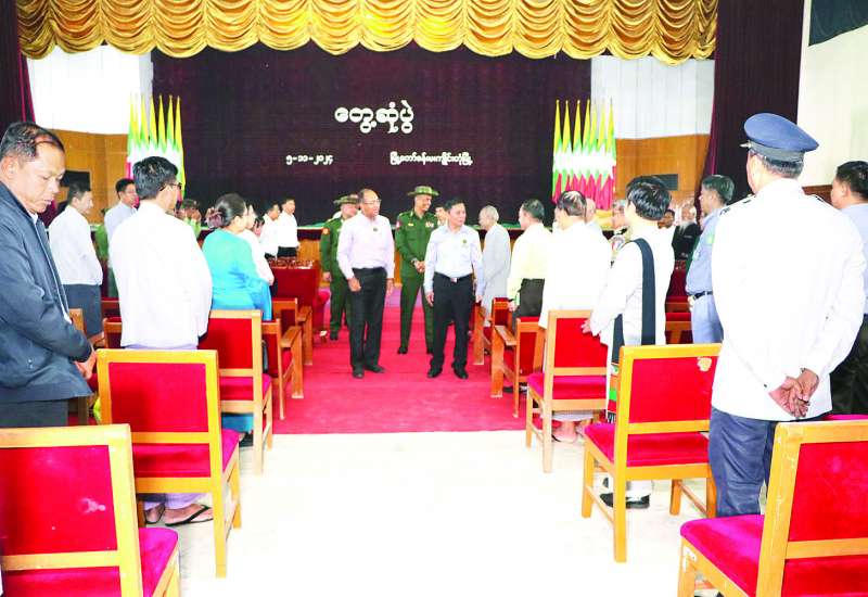 မြေပြင်ကွင်းဆင်းစာရင်းကောက်ယူရေး ကြီးကြပ်မှုဗဟိုကော်မတီဥက္ကဋ္ဌ၊ ဗဟိုသန်းခေါင်စာရင်းကော်မရှင်ဥက္ကဋ္ဌ၊ လူဝင်မှုကြီးကြပ်ရေးနှင့် ပြည်သူ့အင်အားဝန်ကြီးဌာန ပြည်ထောင်စုဝန်ကြီး ဦးမြင့်ကြိုင်သည် ရှမ်းပြည်နယ် မြေပြင်ကွင်းဆင်းစာရင်းကောက်ယူရေးကြီးကြပ်မှုကော်မတီဥက္ကဋ္ဌ၊ ပြည်နယ်သန်းခေါင်စာရင်း ကြီးကြပ်မှုကော်မတီဥက္ကဋ္ဌ၊ ရှမ်းပြည်နယ်ဝန်ကြီးချုပ် ဦးအောင်အောင်နှင့်အတူ ယမန်နေ့က ကျိုင်းတုံမြို့ရှိ မြို့တော်ခန်းမ၌ ပြည်နယ်၊ ခရိုင်၊ မြို့နယ်မြေပြင်ကွင်းဆင်းစာရင်းကောက်ယူရေး ကြီးကြပ်မှုကော်မတီဝင်များနှင့် သန်းခေါင်စာရင်းကြီးကြပ်မှုကော်မတီဝင်များအား တွေ့ဆုံသည်။