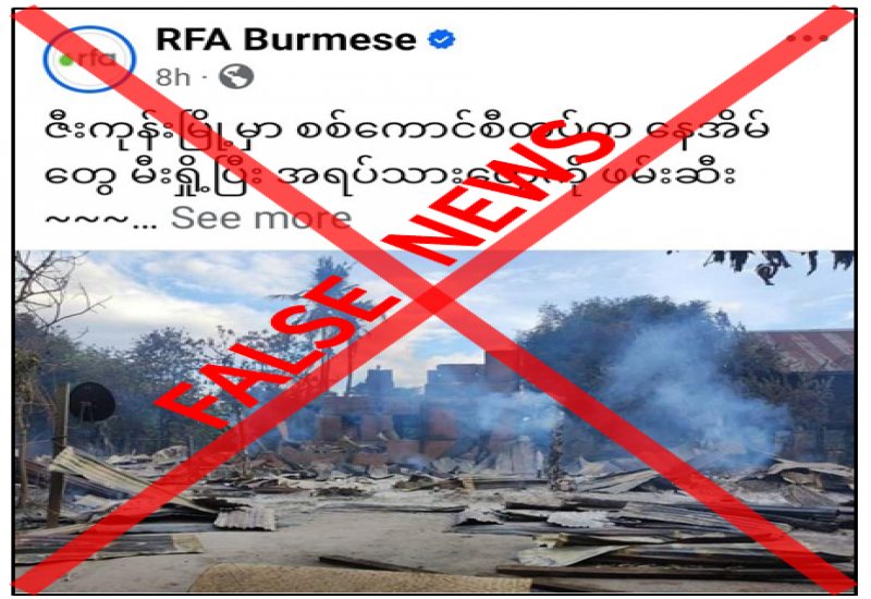 စစ်ကိုင်းတိုင်းဒေသကြီး၊ ကန့်ဘလူမြို့နယ် ဇီးကုန်းမြို့ပေါ်ရှိ လက်ဆည်ရပ်ကွက်ကို လုံခြုံရေးတပ်ဖွဲ့ဝင်များမှ နိုဝင်ဘာလ(၅)ရက်နေ့တွင် ဝင်ရောက်မီးရှို့ပြီး အရပ်သားတွေကို ဖမ်းဆီးခေါ်ဆောင်သွားကြောင်း တရားမဝင်ပြည်ဖျက်မီဒီယာများက မဟုတ်မမှန် သတင်းတု၊ သတင်းအမှားများ ရေးသားဖြန့်ဝေနေသည်ကို တွေ့ရှိရသည်။