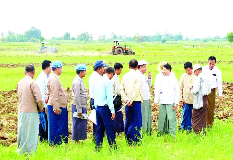 စိုက်ပျိုးရေး၊ မွေးမြူရေးနှင့်ဆည်မြောင်းဝန်ကြီး ဌာနပြည်ထောင်စုဝန်ကြီး ဦးမင်းနောင်သည် ယနေ့ညနေပိုင်းက နေပြည်တော်ကောင်စီနယ်မြေ ပျဉ်းမနားမြို့နယ် သစ်ဆိမ့်ပင်ကျေးရွာ စနစ်ကျလယ်ယာမြေ ၉၅ ဧကတွင် ဆောင်းသီးနှံ မတ်ပဲနှင့် ကုလားပဲစိုက်ပျိုးမည့် တောင်သူ့စိုက်ကွင်းကို စက်မှုလယ်ယာဦးစီးဌာနက ထွန်စက်ကြီးများဖြင့် မြေပြင်ထွန်ယက်ပေးနေမှုကို ကွင်းဆင်းကြည့်ရှုစစ်ဆေးသည်။