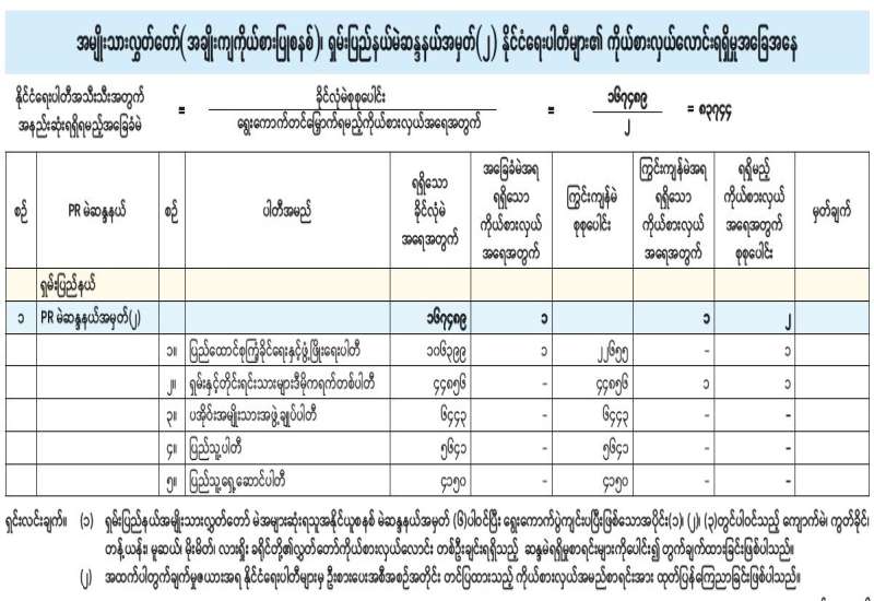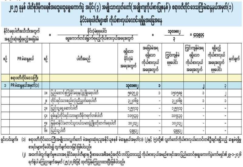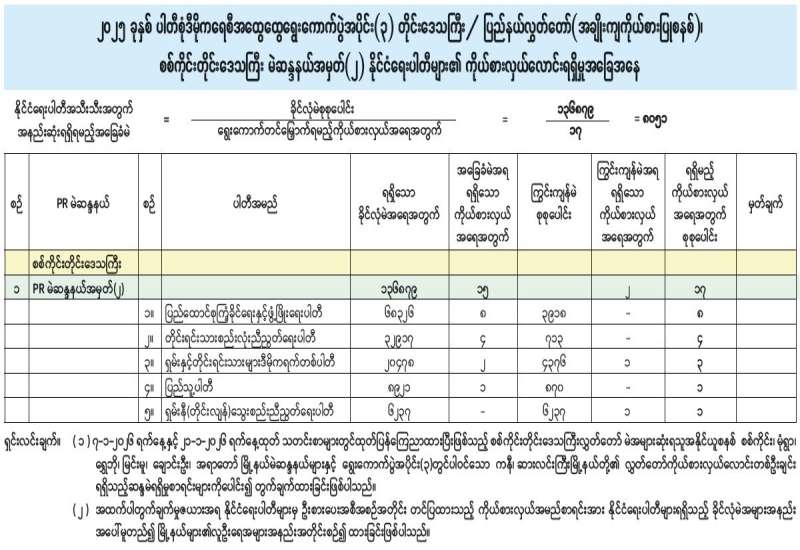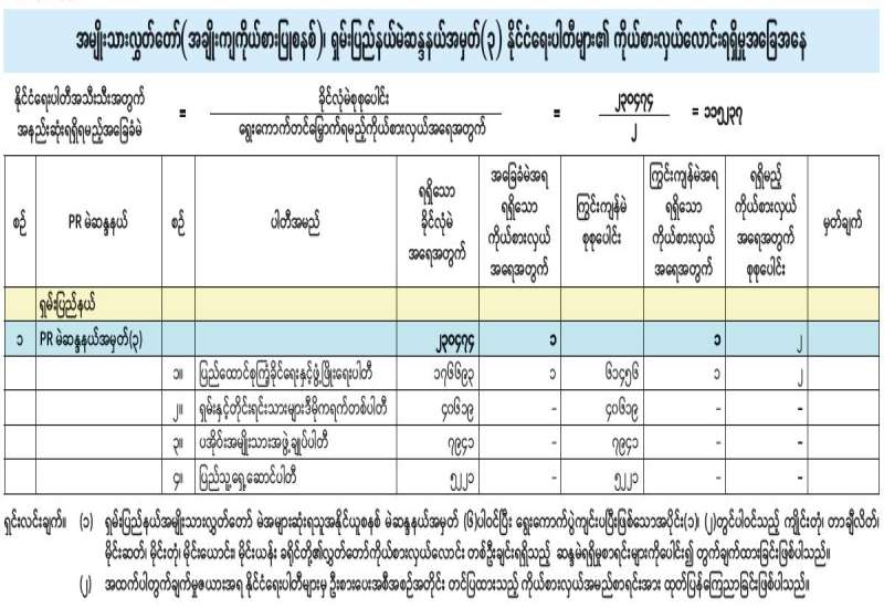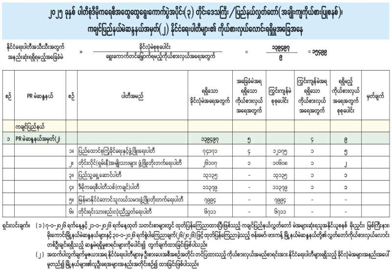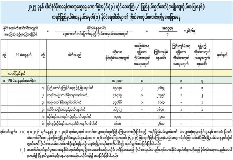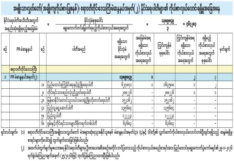 အမျိုးသားလွှတ်တော် (အချိုးကျကိုယ်စားပြုစနစ်)၊ ဧရာဝတီတိုင်းဒေသကြီးမဲဆန္ဒနယ်အမှတ် (၂) နိုင်ငံရေးပါတီများ၏ ကိုယ်စားလှယ်လောင်းရရှိမှုအခြေအနေ