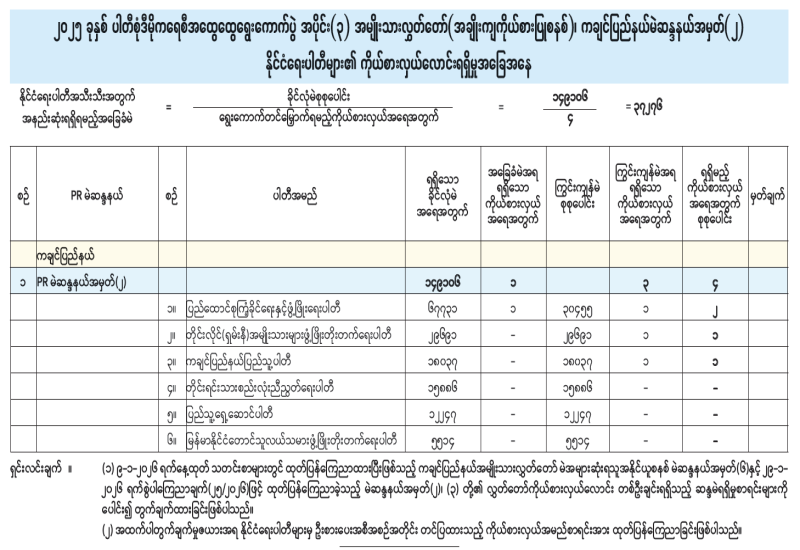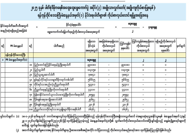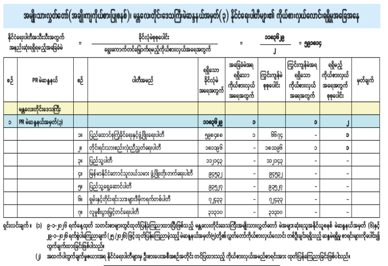 အမျိုးသားလွှတ်တော်(အချိုးကျကိုယ်စားပြုစနစ်)၊ ပဲခူးတိုင်းဒေသကြီးမဲဆန္ဒနယ်အမှတ်(၂) နိုင်ငံရေးပါတီများ၏ ကိုယ်စားလှယ်လောင်းရရှိမှုအခြေအနေ