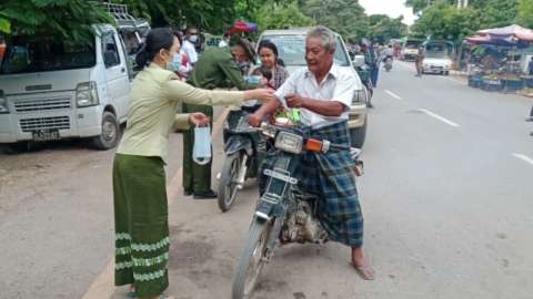 စဉ့်ကိုင်မြို့နယ်တွင် ကိုဗစ်-၁၉ ရောဂါကြိုတင်ကာကွယ်ရေး နှာခေါင်းစည်းများ အခမဲ့ဖြန့်ဝေ